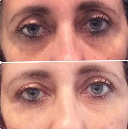 Les cernes paraissent moins creusés, les rides du sourire plus lisses, et les ridules au-dessus des lèvres sont atténuées — sans fini gras ni résidu.