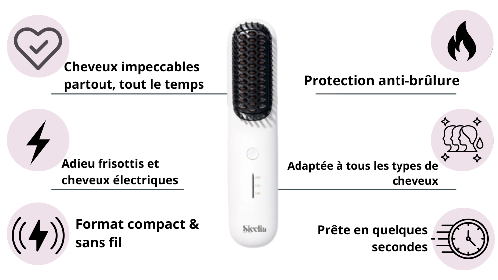 Grâce à des millions d’ions générés, Sicelia élimine facilement les frisottis et l’électricité statique tout en apportant une brillance supplémentaire à tes cheveux.